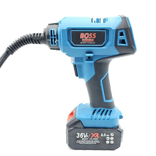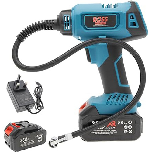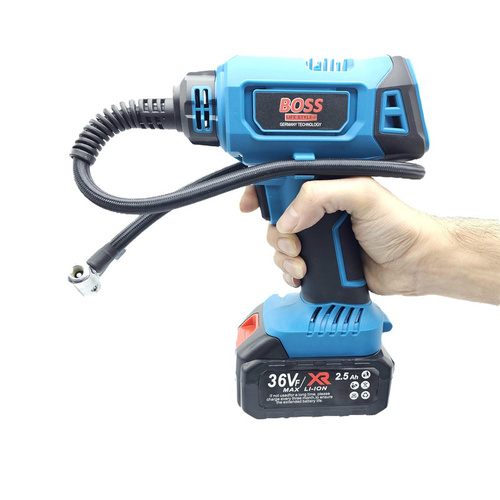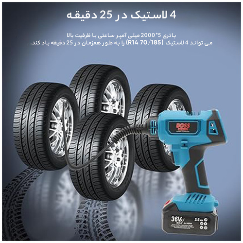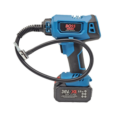 نسل جدید پمپ های هوا از برند BOSS ساخت کشور چین مینی کمپرسور شارژی دوحالته باس با موتور ذغالی و تغذیه 36 ولت محصولی ایده آل برای باد زدن تایر، توپ، تشک، دوچرخه و ... تغذیه با باتری لیتیومی و برق فندک یا برق شهر توقف خودکار موتور بعد از رسیدن به فشار باد مورد نیاز مجهز به پنل دکمه ای و نمایشگر دیجیتالی مقدار فشار خروجی دارای چراغ LED برای روشن کردن سطح کار در فضای تاریک شلنگ 60 سانتی متر و امکان کار ممتد قابل کار با باتری های سری Procore باس طراحی ارگونومیک با دسته روکش دار و وزن پایین و سبک